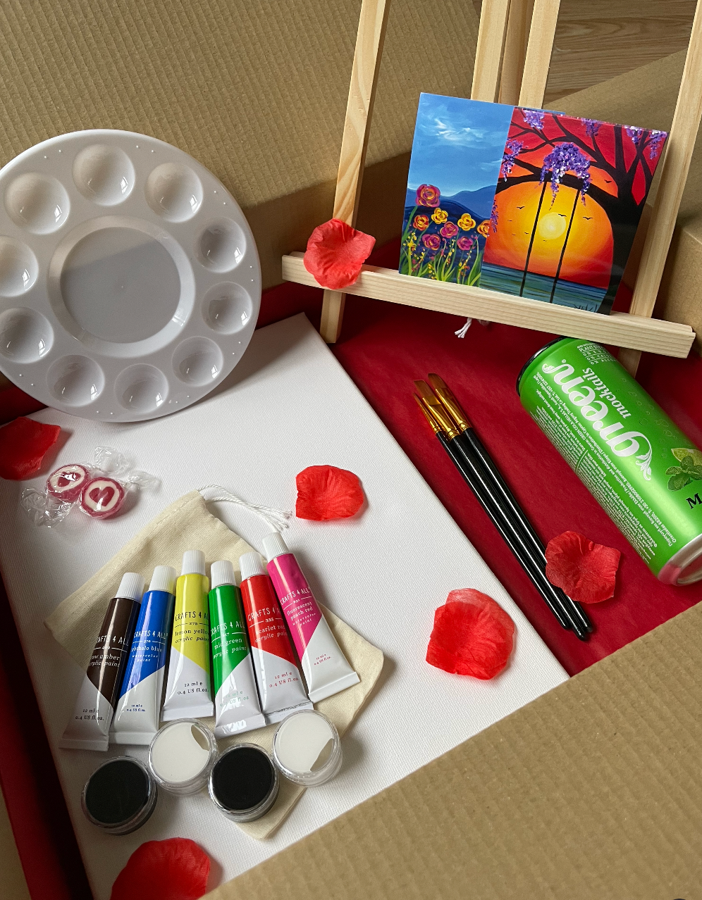 Gift Set For Her. Gift Set For Him. Woman's Art Gift Set. Men's Art Gift Set. Gift For Her. Gift For Him. Art Set. Christmas Gift. Valentine's Gift. Birthday Gift. Art Box. Art Set. Art Box. Mothers Day Gift Set. Fathers Day Gift Set. Date Night Gift Set. Gift For Her. Gift For Him. His and Hers Gift Set. Sip and Paint Gift Set. Sip n' Paint Art Set. Art Gift Set. Date Night Set. Girls Night In Set. Birthday Gift Set. Anniversary Gift Set. Christmas.Activity box date night . Painting kit . At home date night . Paint mix palette. Painting set. Date night box. Sip and paint. Cream coloured artist canvas. Art gift set. Craft kit for adults. Sip and paint kits. Sip and paint kit. Home art kit. Couples sip n paint kit. Adult art and crafts. Adult paint gift. Painting sets. Date night kit for one. Canvas and paint. Couples gift. Activity for couples. Date night box. Crafts for adults. Couples gift. Activity for couples. Couples art kit. Party canvas painting. Date night box for two. Paint n sip. Party canvas painting. Painting sets. Painting. baby shower craft kit. Oil painting canvas kit. Collage and paint. Adult paint gift. Painting date night. Paint and sip kits. Canvas on stand.